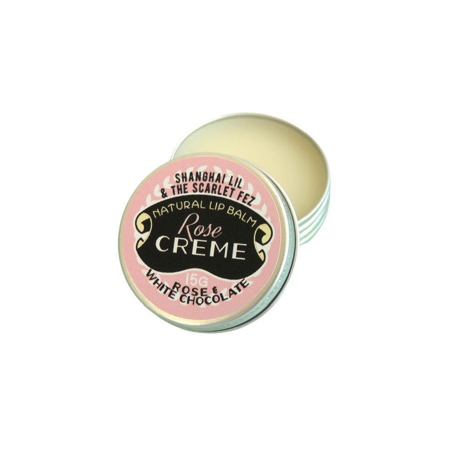 Rose Creme lip balm is flavoured with sumptuous rose and white chocolate in a luscious blend of macadamia butter, apricot kernel oil and jojoba. Beautifully packaged in a generous and handy sized tin, Rose Creme is the prettiest of our lip balms.